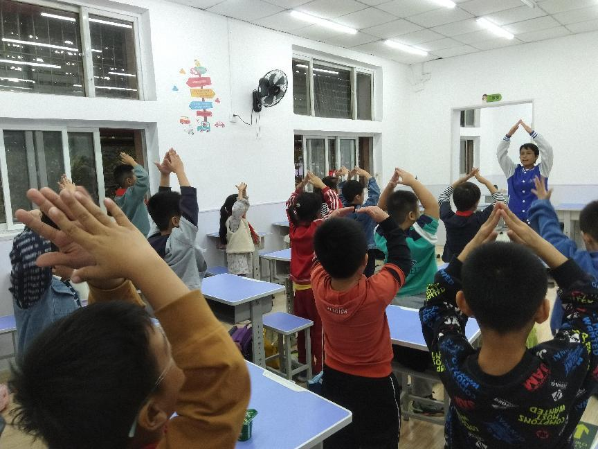 最后社工教孩子们学习了手势舞《悯农》,以寓教于乐的形式让孩子懂得一粥一饭当思来之不易,将节俭养德的品质深耕心中。