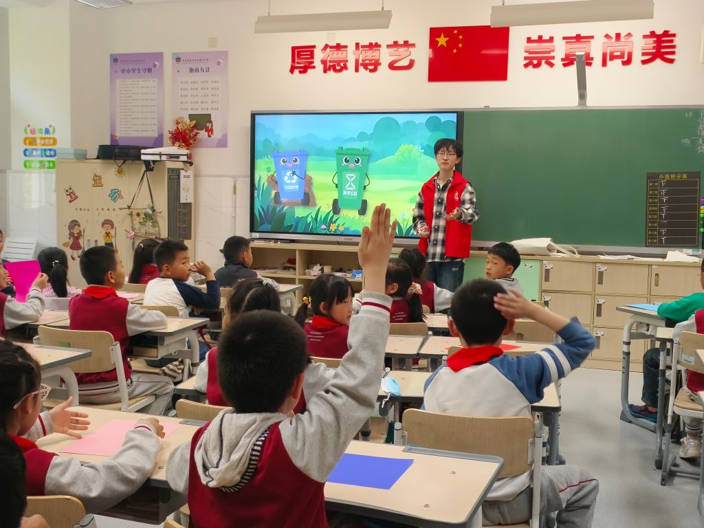 活动开展前期,社工站招募志愿者,发动青年志愿力量,为本期主题宣传活动持续助力。过程中,通过PPT讲解,向孩子们展现绿色低碳生活的方式方法,结合垃圾分类、手工制作等互动环节,激发儿童对绿色低碳生活的兴趣和积极性,鼓励大家在日常生活中养成绿色低碳的生活习惯,并带动身边的人共同参与。活动虽已结束,却在孩子们的心中种下了低碳生活的种子,很多学生纷纷表示,以后不仅自己要践行低碳生活,也要带领自己的家人一起加入。