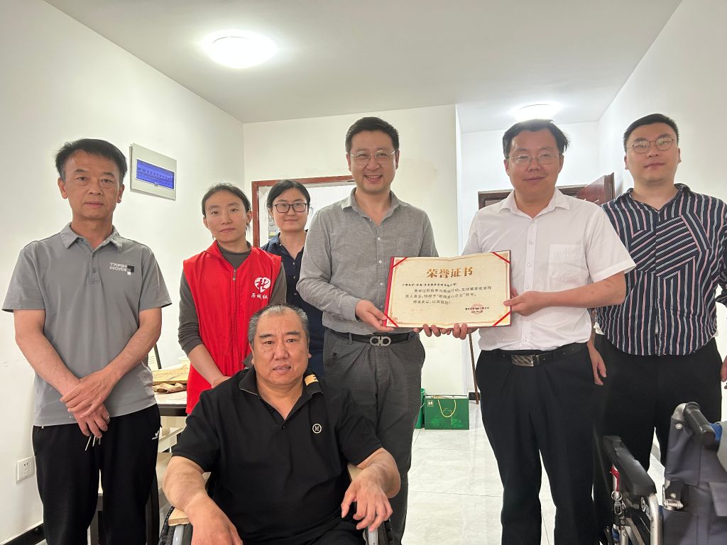 社工与谢老师提前约好见面时间,谢老师早早的就在家中等候我们。简单介绍后,社工根据前两次入户整理的信息,向维修技术人员澄清了谢老师对辅具的需求,并再次询问谢老师对其他个别辅具安装的要求,也可以向维修人员提出,看能否一并解决。通过社工摘要,维修人员了解清楚谢老师的需求后,就来到卫生间查看无障碍扶手的情况。经过现场查看,维修技术人员表示多亏你们社工前期入户工作到位,给我们的资料及照片很全面,基于此制定的维修方案也很贴切谢老师的辅具维修的状况,这次工具带的很齐全,很快就能维修好。经过1个多小时的维修,困扰谢老师的一大难题终于得到解决,谢老师露出了满意的笑容。最后,为感谢小橙长护(济南)养老服务管理有限公司的爱心义举,董家街道民政办主任赵而强向爱心企业颁发“爱心企业志愿服务”证书,再次表示了对爱心企业此次雪中送炭的感谢。