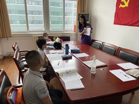约定的时间还没到,社区的青少年们就来到了活动室,在志愿者引领下签到就坐后,与家长们告别。报名参与活动的志愿者都是高中生,初次见面大家难免有些拘束,社工带领志愿者与青少年们进行自我介绍,相仿的年纪让他们自然而然的熟悉了起来。