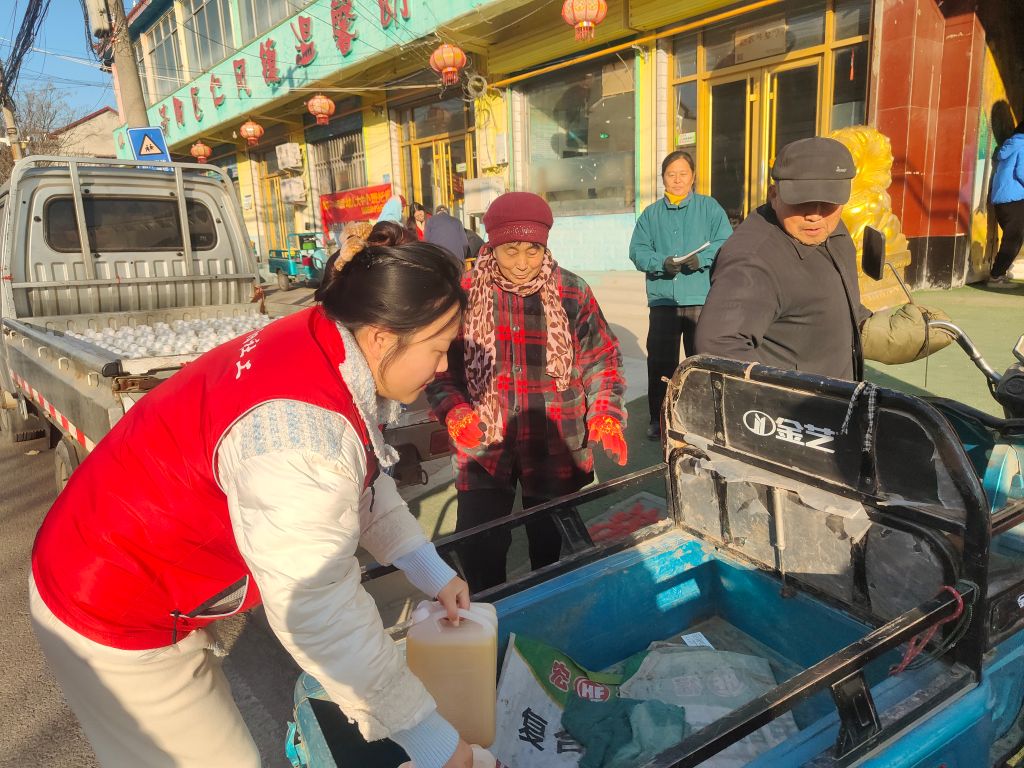 活动现场,社工和志愿者们早早到达,将一袋袋面和一桶桶油整齐摆放好,等待老人们前来领取。不一会儿,老人们陆陆续续来到了村委,脸上都洋溢着幸福的笑容,前来领取物资的老人们在社工的引导下,有序排队登记,社工和志愿者将每位老人的物资搬运到老人的车子上。对于行动不便的老人,社工还贴心地提供送货上门服务,确保每一位符合条件的老人都能顺利收到物资。