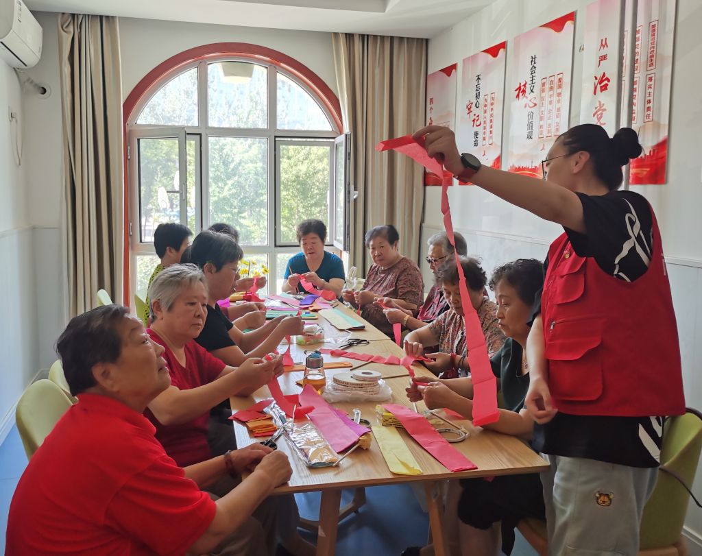 为丰富辖区老年人生活,8月29日下午,六里山街道社工站在综合养老中心开展“皱纹纸花”手工DIY活动。经过前期活动宣传,老人们纷纷报名参与,早早来到活动现场,都想露上一手给大伙看看,用作品展示自己热爱生活的态度。