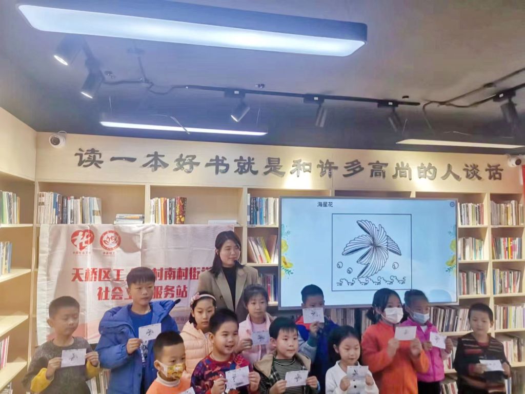 禅绕画作为一种全新的绘画方式,也被誉为大脑瑜伽、心灵的画作,通过缠绕,人脑可以逐渐达到深度的专注。为了加强辖区儿童的专注能力,培养儿童良好的习惯,推进“‘童成长·护梦行’关爱儿童群体服务项目”服务。南村街道社工站在泉城书房二楼,开展“体验禅绕创作 提升专注能力”《青少年优势成长系列》讲座。