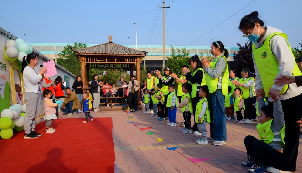 用童年的脚步丈量光阴,是父母的关爱,同伴的嬉闹,是阳光下的游乐场。许多流动人口选择将孩子带至身边,以此保证儿童的生活质量,参与孩子的成长,但城市快节奏的生活和生计的压力,环境中缺乏相匹配的资源与支持,让随迁儿童与家长的互动往往停留在基础生活层面。为进一步丰富辖区流动儿童的社区参与资源,增进流动群体与随迁儿童发展健康的亲子关系,济南槐荫积成社区社会服务中心新市民城市融入支持服务项目(以下简称“积成社”)针对2至4岁随迁儿童及其家长开展“阅”芽亲子运动会,让春光镌刻属于亲子的幸福时刻。