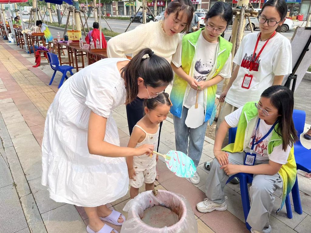 活动现场,琳琅满目的手工艺品吸引了众多家长与儿童的目光。扎染、灯笼、漆扇等手工制作区域人头攒动,大家纷纷动手尝试,感受传统手工艺的魅力。每一件作品都是独一无二的,这不仅展现了居民们的巧手与创意,更蕴含着对传统文化的传承与创新。同时,垃圾分类飞行棋游戏区也在火热进行,居民们在一掷一跳中寻找乐趣、收获知识,环保意识在不知不觉中得到了增强。