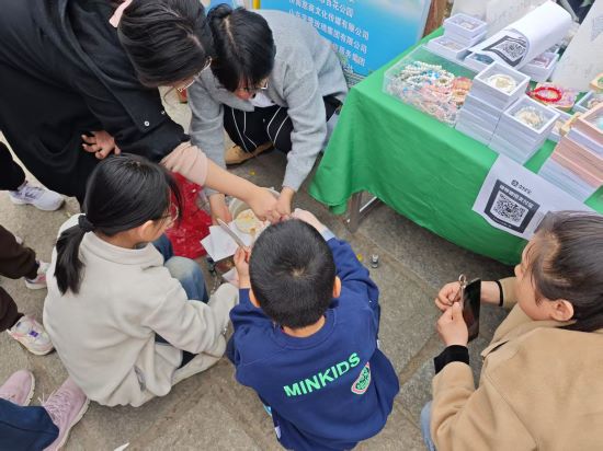 百花公园花朝节游人如织、氛围热烈,义卖活动正式开场。摊位上摆满残疾人朋友制作的精美手工艺品,手链饱含对生活的热爱,手机链俏皮,钥匙扣精巧,钩针摆件展现顽强,此外,社工们还贴心准备了具有传统文化韵味的小漆扇,扇面上精美的图案与细腻的笔触,为这场义卖增添了一抹古典之美。