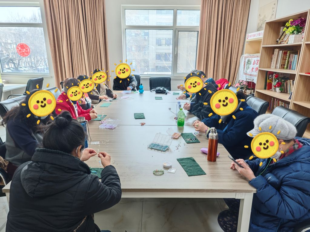 活动前期,社工化身暖心引路人,深入残疾人朋友生活,凭借专业素养,敏锐发掘出不少残疾人手部灵活、有手工创作潜能。为了将这份天赋转化为点亮生活的希望之光,社工们迅速行动,与残疾人围坐制作串珠手链。从选珠子颜色、搭配,到串珠技巧,社工耐心讲解、反复示范,充分发挥引导作用。残疾人紧跟步伐,专注串珠,每颗珠子碰撞声,似在叩响美好生活大门。