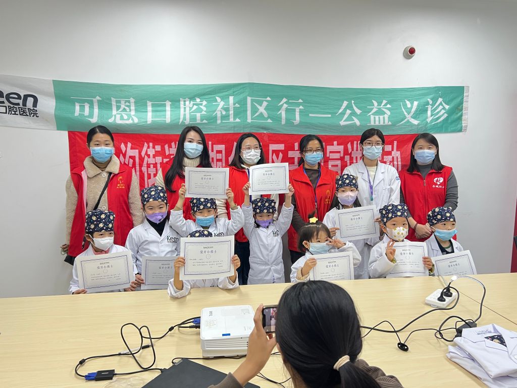 活动伊始,通过口腔医生生动地讲解,小朋友们了解了蛀牙的形成与预防、牙齿的构成等保健小知识,除此之外,医生现场给大家展示了正确的刷牙方式,并通过有趣的互动形式让小朋友们掌握保护牙齿的小妙招。当然,想要当好小牙医,仅仅知道理论知识是不够的,驻站社工为孩子们换上白大褂,大家纷纷化身“小牙医”,根据医生的示范,模拟刷牙的流程。身份的变化,成功调动了小朋友对爱护牙齿的关注度。活动最后,口腔医生为孩子们颁发了小小牙医结业证书和精美礼品,鼓励他们继续学习口腔健康知识,保护自己的牙齿。家长们表示活动非常有意义,寓教于乐中让孩子们意识到保护牙齿的重要性。