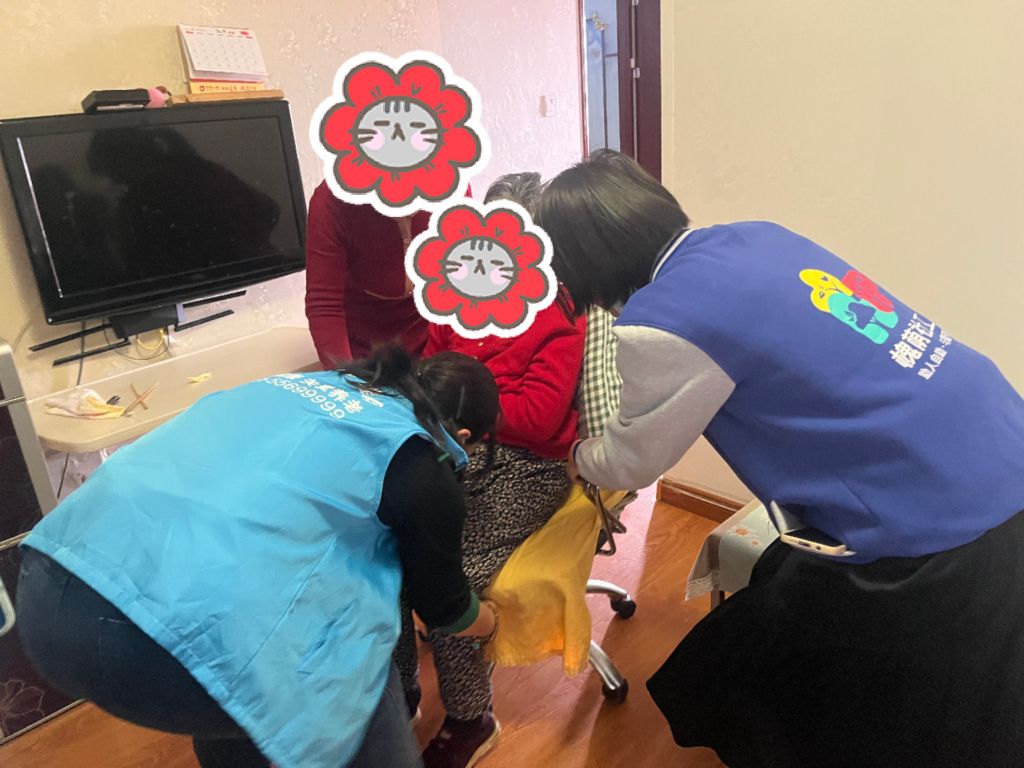 为帮助失能群体及其家属,社工仔细查找和筛选资源,链接一家云天使护理院,可以提供理发、修脚、洗澡等护理服务,他们派出两名护理志愿者跟随社工上门走访,帮助解决实际困难。