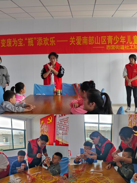 为宣传旧物改造理念,提升儿童环保意识、动手能力和实践能力,10月16日,西营街道社工站在西营办事处二楼开展“变废为宝,‘瓶’添欢乐——关爱南部山区青少年儿童活动”。