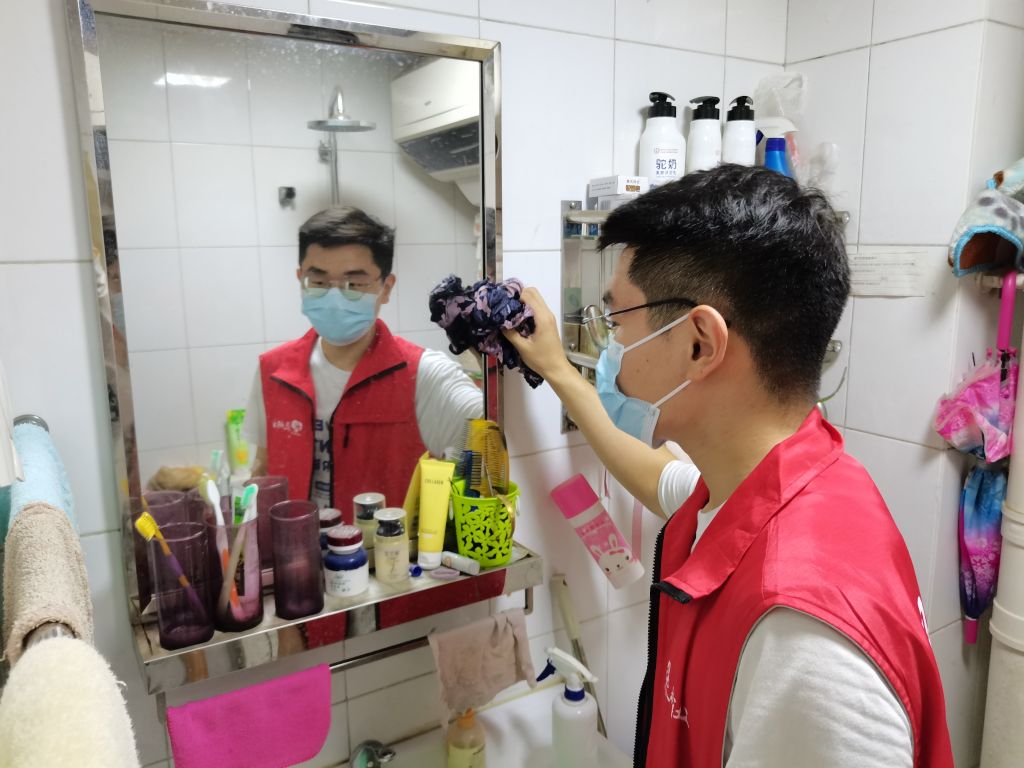 上午,由1名社工和2名社区社会组织志愿者组成的清洁小队,深入到老年人家中进行清洁打扫。志愿者与老人简单的进行了沟通,便分工明确有条不紊的开始了清理。清理厨房、擦拭玻璃……每到一处,志愿者们都恪尽职守的清理陈年的污垢和垃圾,整理杂乱的物品摆放整齐,让老人们的生活环境焕发新气象。