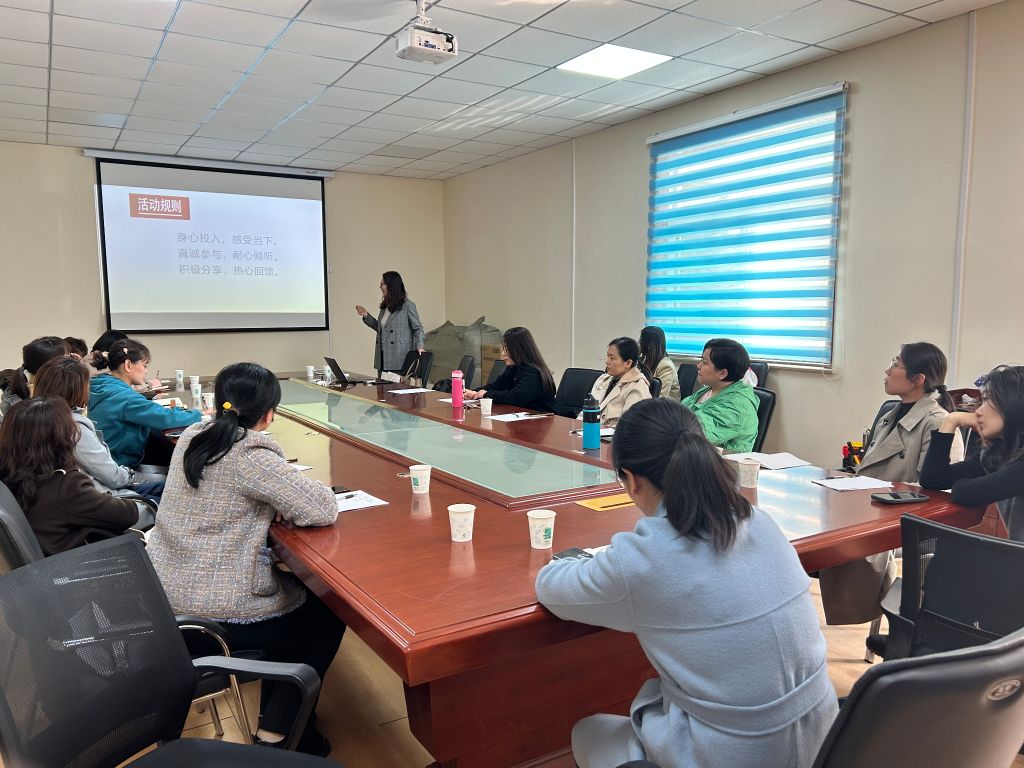 首先王俊燕老师带领大家开展热身小游戏,通过捉手指这一简单的游戏,王老师引导大家,对于孩子的关注要更多的运用优势视角。同时王俊燕老师强调家庭是一个系统,家庭社会系统理论认为家长作为较为成熟的个体,对于孩子的不足之处家长可以首先的做出改变,从而引导孩子通过观察学习等方式推动自身行为的变化。随后,王俊燕老师邀请每位母亲进行发言,介绍自己当前与孩子的相处状态,并以“身心投入,感受当下。真诚参与,耐心倾听。积极分享,热心回馈。”为规则邀请家长进行小剧场的模拟,以此引导家长做出恰当的行为反应,在为孩子树立规则意识的同时拉近并改善亲子关系。最后,王俊燕老师鼓励大家从点滴做起,或许是今天下班前对自己心情的调整,或许是下班后以平等的姿态蹲下来主动与孩子进行的沟通与交流,也可能是踏进家门前的微笑……