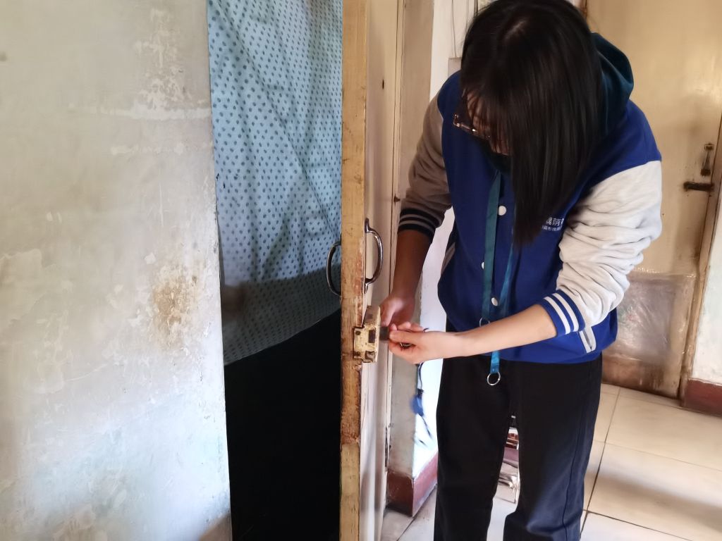 近年来,我国家庭结构正在发生显著变化,家庭小型化、人口老龄化等社会特点日益突出,高龄独居老人精细化服务日益凸显,很多弱势困难家庭由于其身体年龄、机能等自身客观条件往往在遇到问题时得不到及时的解决,严重影响着日常生活及对未来生活的信心。在上一次入户走访过程中,道德街街道社工站社工在跟90岁的吴奶奶沟通过程中,了解到吴奶奶家门锁开关不便的情况,仔细查看后发现吴奶奶家中的门锁已经生锈,且防盗门的门锁出现老化情况,才导致开锁困难。11月15日,社工带好工具,上门为服务对象解决问题。
