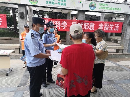 为进一步增强广大社区居民自觉防范邪教、反对邪教的意识,切实增强居民自觉抵御邪教侵蚀的能力。7月31日上午,四里村街道“心家园”项目组联合四里村街道派出所在英雄山社区开展一场主题为“崇尚科学,反对邪教,幸福生活”反邪教宣传活动。活动吸引了80余名社区居民的参与。