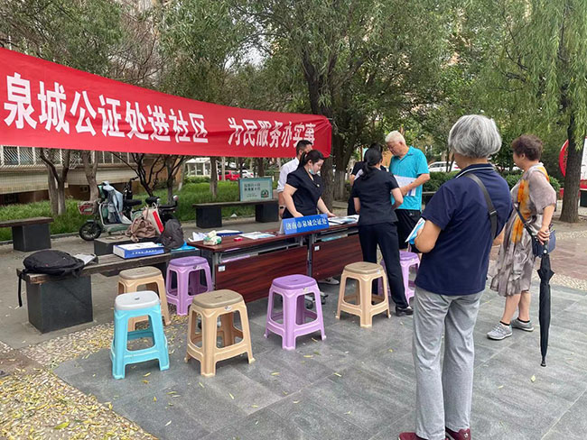 活动现场专门设立了法律咨询服务台,向广大社区居民宣传与生活息息相关的法律法规,并当场解答群众法律咨询,提供法律服务。居民们从一开始的一头雾水到后来的奔走相告,纷纷就房屋买卖、婚姻家庭、邻里关系、财产继承等法律问题提出咨询。泉城公证处的律师们一一对提出的问题为群众作出解答,与此同时,通过发放宣传手册,向大家介绍了生活中财产、抚养与赡养、继承、婚姻状况等事件进行公正的必要性,让现场群众在满足法律咨询需求的同时,也收获了相关的法律知识。
