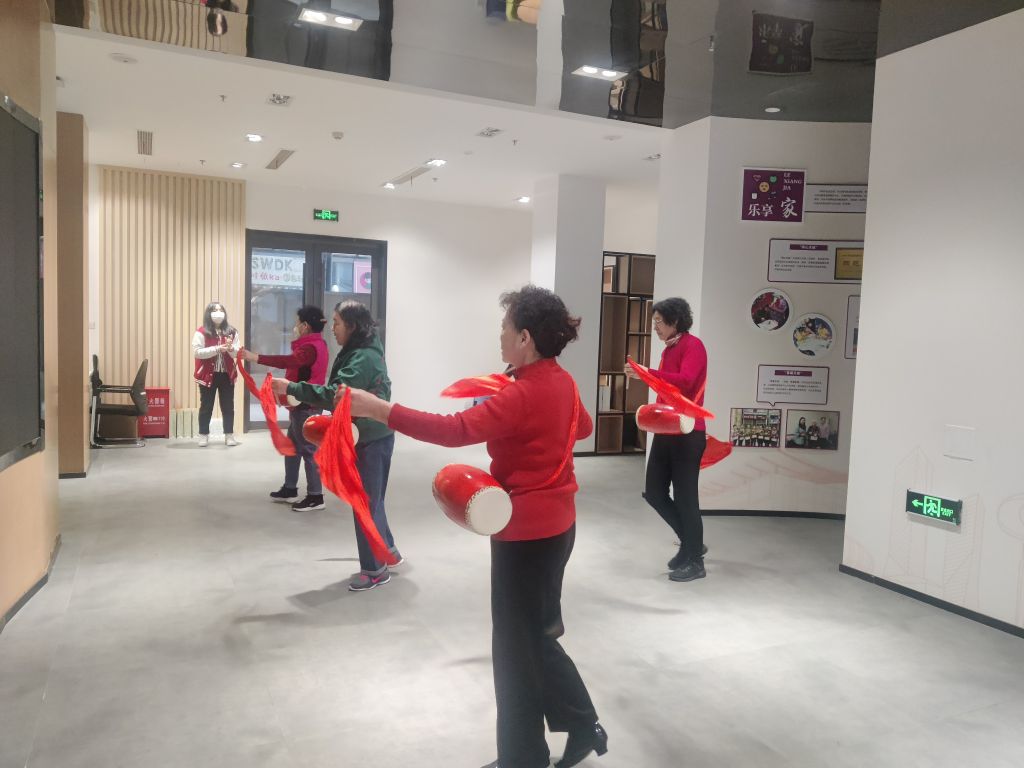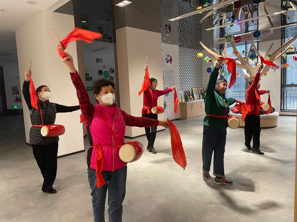 腰鼓队的新老队员们系上火红的腰鼓,排着整齐的队形,精气神十足,热情洋溢地敲打着,指导老师从最基本的鼓点教起,社工耐心地为学员们示范腰鼓敲打的基本动作要领,学员们更是一丝不苟、虚心求教,舞出了别样风姿,舞出了新鲜活力。打腰鼓能强健体魄,排解内心的烦闷,在身健的同时,心也健了。在这样热闹而喜庆的咚咚鼓声中,大家也逐渐喜爱上了腰鼓这项活动。