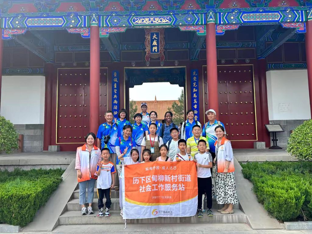 甸柳新村街道社工站以困境儿童定向邀请、普通儿童海报招募的形式共招募到10小朋友参与“清爽一‘夏’”夏令营活动,为丰富儿童夏令营体验,社工站特设计六节以“成长奇遇记”为主题的户外历奇体验活动,引领孩子们探索未知。第一次活动是“穿越千年·文庙探秘”的文化之旅,社工站链接老济南纪念馆志愿者资源,带领小朋友游览济南文庙,感受它的古老与魅力。