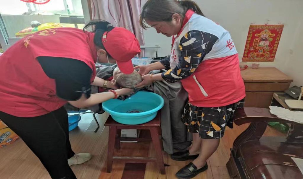 为不能出门的困难群体上门理发,再帮她洗洗头,我们已经坚持了一年之久