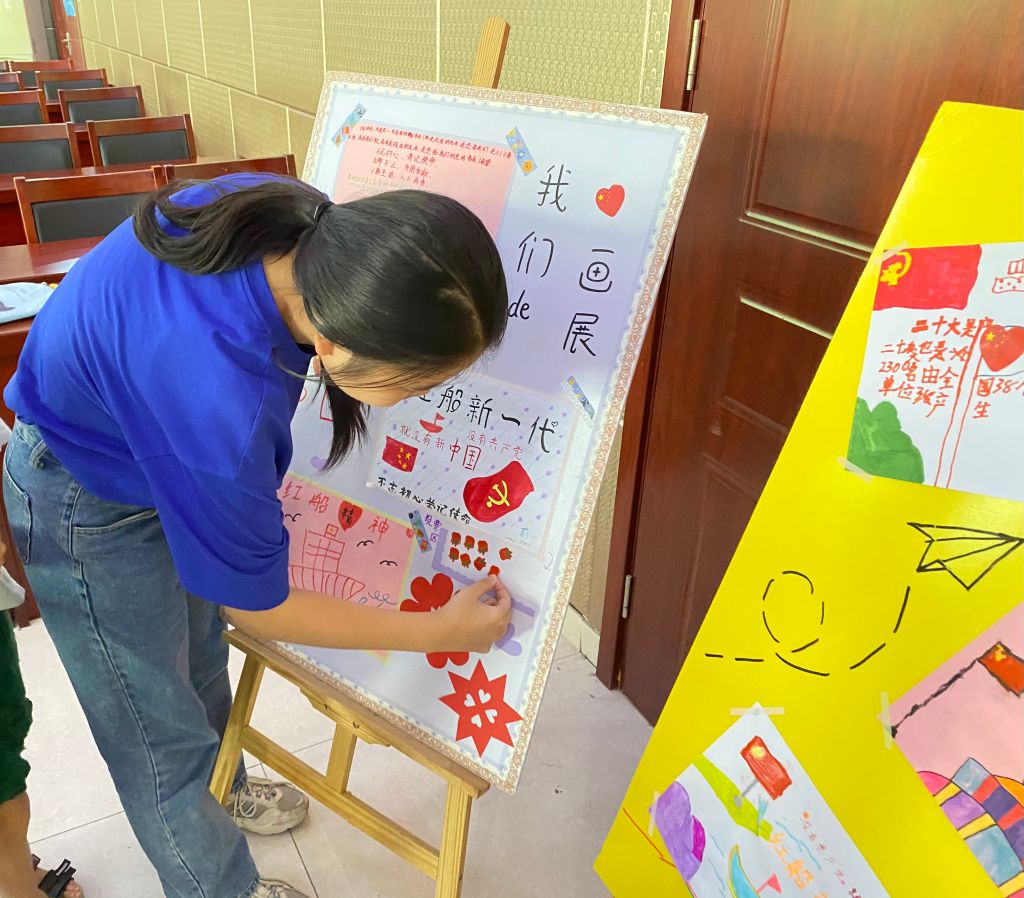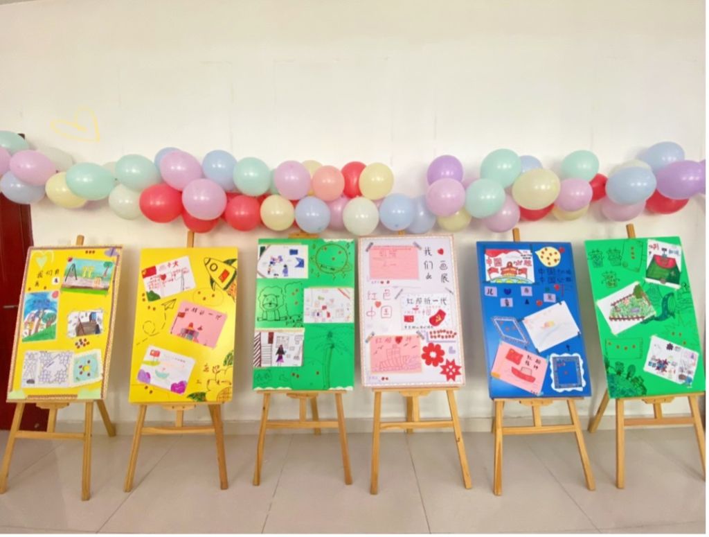 小营员们自己动手设计的画作展示板