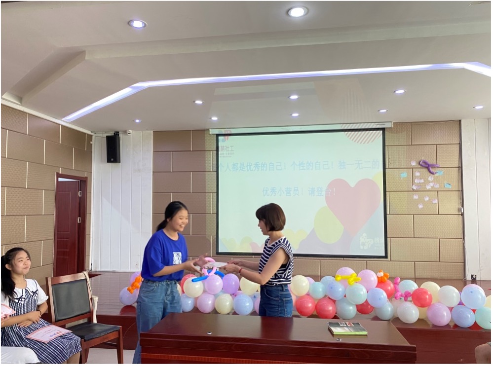 接着社工引导小营员们分享成长收获。有的小营员说认识了新朋友,有的小营员说现在自己是家里的垃圾分类小能手,也有小营员说这里让暑假更有意义。社工相信每一个青少年都是独一无二的,都有自己的潜能,夏令营正是青少年施展才华、竞展风采的舞台。讨论分享过后,社工站邀请绿园社区党委副书记魏玮作为嘉宾代表为小营员们颁发结营证书,肯定了每位小营员在夏令营中的积极参与优秀表现。