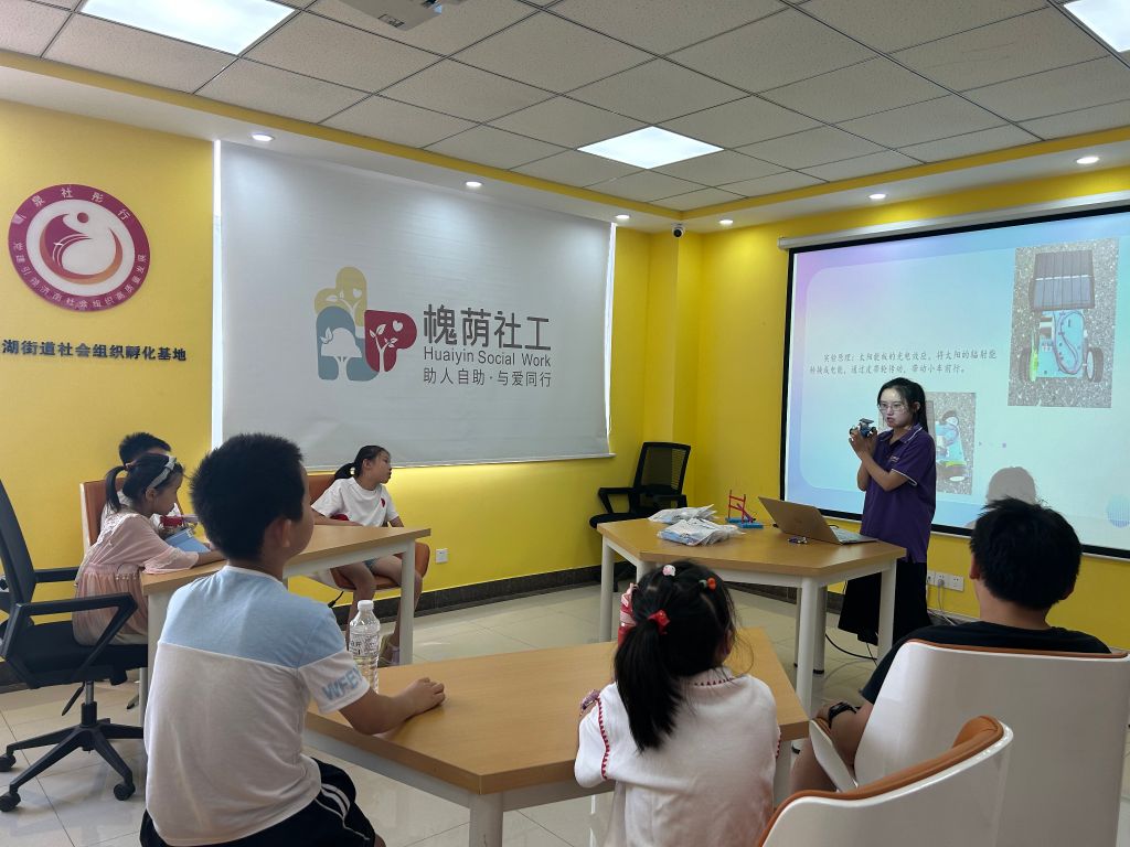 美里湖街道社会工作服务站青少年夏令营之科技体验小组已经开展到第五节了,本次科技体验的主题是“太阳能与电”。社工首先带领青少年一起了解了什么是电,电是怎么来的,日常生活中常见的发电形式有哪些,什么是太阳能,太阳能的用处有哪些,为什么说太阳能是新能源等科学知识,通过科普让青少年对“太阳能与电”有了一个比较清晰和全面的认识,为接下来的科学小制作铺垫了科学基础。