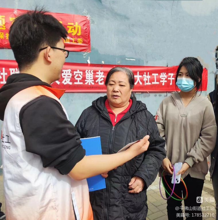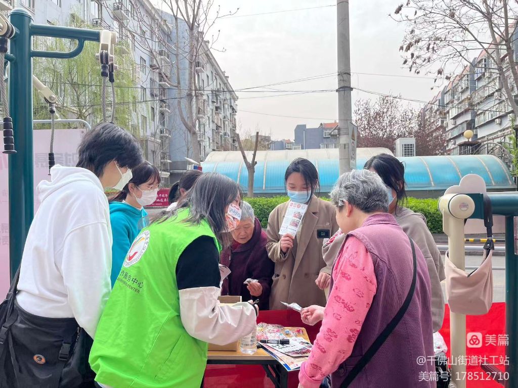 活动伊始,社工通过宣传展板,发放宣传单、宣传册等方式,向群众展示社会工作者服务风采,普及社会工作知识,增加居民对千佛山街道社工站及社工服务的了解。社工向居民们介绍了千佛山街道社工站的专业服务和职能作用,现场为居民解答相关问题,积极拓展专业服务,现场发掘潜在服务对象,记录居民需求问题。