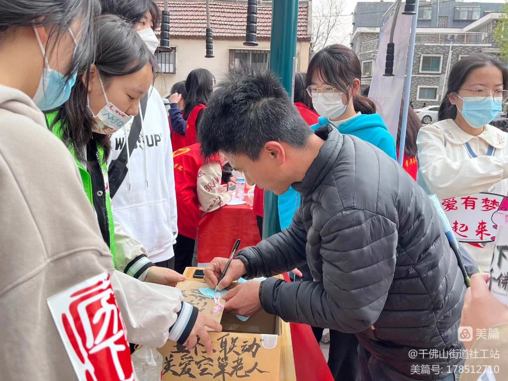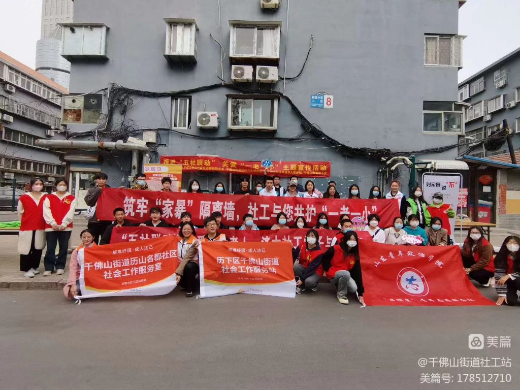 2023年第十七个国际社工日如约而至,为进一步宣传社会工作服务,激发社会公众关心、支持、参与社会工作的热情,近日,千佛山街道社工站携手千佛山街道社区社会组织联合会、千佛山街道新时代文明实践站、千佛山街道未成年人保护站、千佛山街道团工委、启明星青年志愿服务社及济南大学社工团,深入社区,开展“推进‘五社联动’关爱‘一老一小’”主题宣传活动,积极拓展居民群众对社会工作的了解。