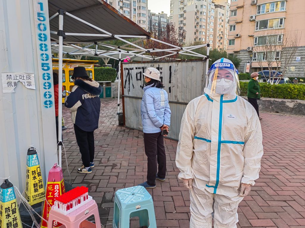 陡沟街道社工站社工在舜玉路街道伟东新都一区广场核酸检测点,为社区居民扫码,维持现场秩序,及时主动提醒居民戴好口罩、保持1米安全距离,帮助年长居民学会如何正确使用健康码,同时对疫情防控期间的注意事项进行提醒,确保核酸检测井然有序。