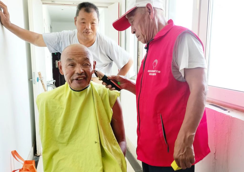 除此之外,志愿者为老人们进行爱心义剪,老人们井然有序地排队等候,志愿者耐心地询问其诉求,为老人们修剪头发。