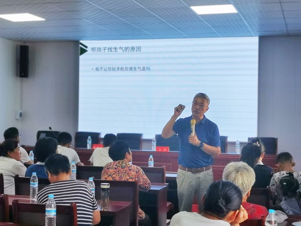 父母工作繁忙、教育孩子的时间变少,如何与孩子沟通交流变成家长十分关注但难以解决的问题,董家街道社工站回应家长需求,积极探索帮助家长掌握正确有效的亲子沟通方式,促进儿童、青少年全面健康发展,8月7日,社工站联合街道民政办、儿童主任、王新村村委,在历城区社工总站的支持下,邀请幸福树心理学堂家庭教育指导师陈树会老师,开展“亲子沟通情绪管理技巧”公益讲座。