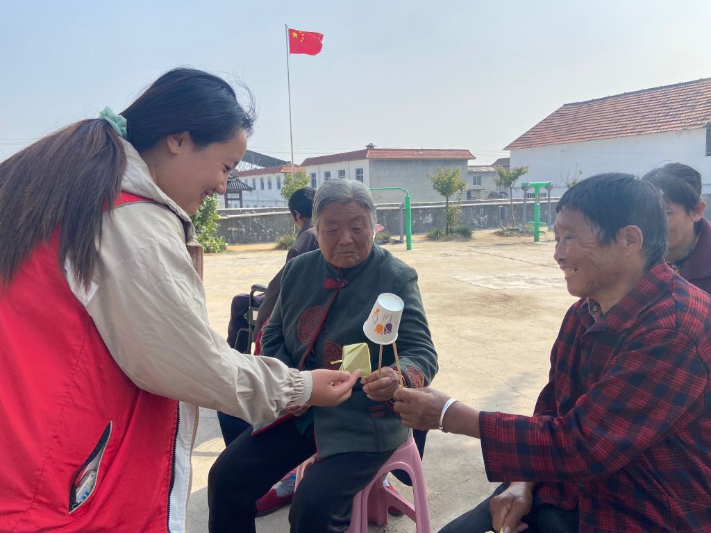 紧接着,“纸杯传传乐”游戏将活动推向了高潮。老人们围坐一起,通过传递纸杯的方式进行接力比赛,既考验了大家的反应速度,又增强了团队协作能力。游戏中,老人们笑声不断,仿佛回到了无忧无虑的童年时光。在愉快的氛围下,88岁的张奶奶激动地唱起了红歌,感谢党和国家的关怀与照料。
