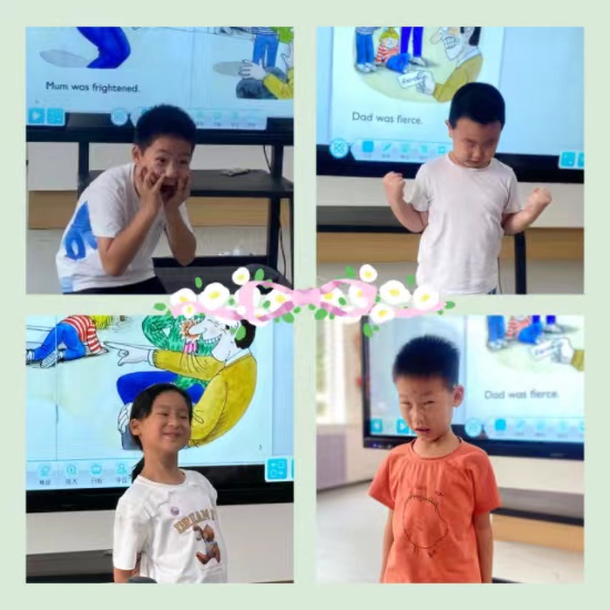 活动开始前,老师带领着小朋友们进行热身游戏,通过简单的英语单词以及英语小游戏调动起孩子的兴趣。随后,老师带着小朋友们一起阅读了英语绘本《Making faces》,老师生动有趣的讲述,把小朋友们带入到了一个神奇而又富有魔力的英语世界中。阅读完毕后,老师引导小朋友们进行角色扮演,将刚才绘本中的角色演绎出来,小朋友们充分理解了绘本故事的内容和精神内涵,认真揣摩自己扮演的角色,在他们声情并茂的演绎中,一个个角色变得鲜活灵动,将绘本故事演绎的淋漓尽致。