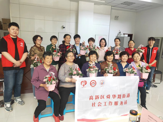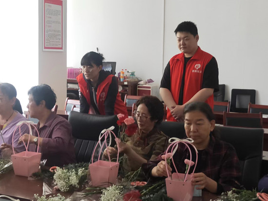 缤纷花朵 温馨母爱——舜华路街道社工站开展母亲节插花制作活动