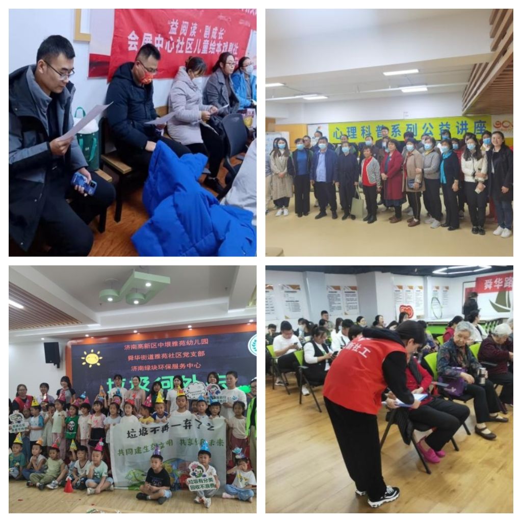 舜华路社工站在与社区居委会开展小组、社区活动时反向较好、内容丰富的社会组织进行分类细化,明确社区居民的期望值,与之一一对应,在分配重新开展活动,不仅提高了社会组织的开发热情,同频提高了社区居民的参与率,经过重新调配分析后,活动参与率达到了86%,其中环保公益课堂、心理健康讲座、非遗手工课堂、绘本阅读、智慧家长课堂的参与率达到120%,满意度达到100%。