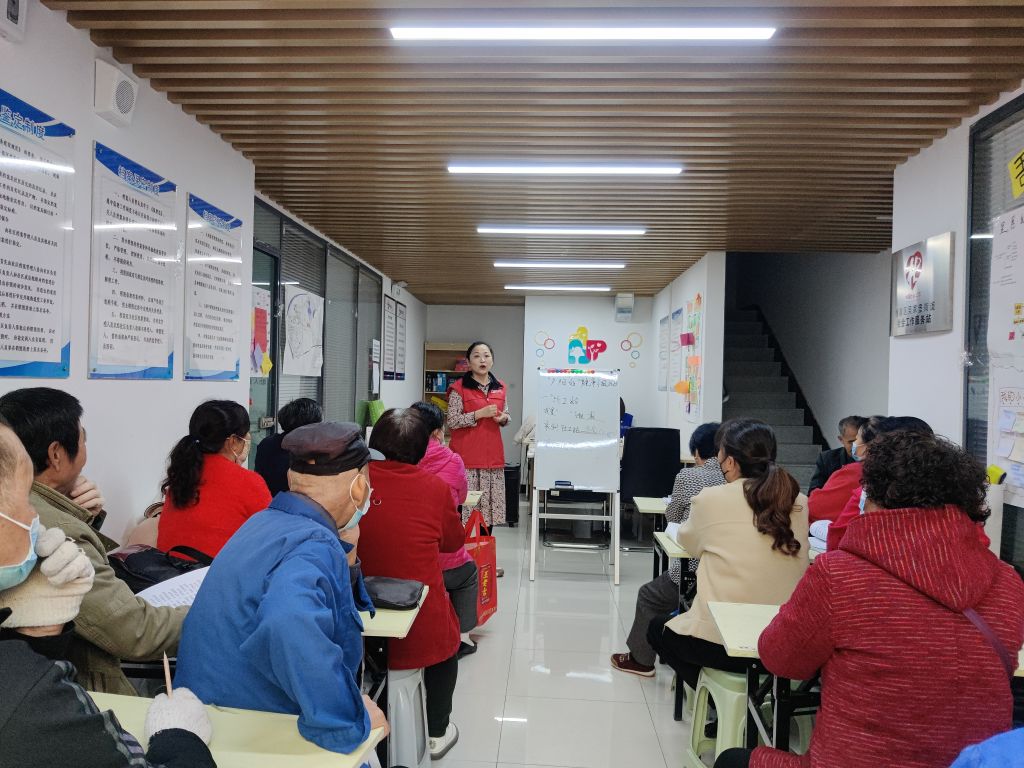 心怀饮水之源、常有敬老之意。尊老、敬老、爱老是中华民族的传统美德,也是一个国家和地区文明进步的重要标志敬,也是我们每个社会个体应尽的义务。在“敬老爱老知识宣传”环节,社工通过播放视频使得组员熟知身边的“社会福利”,普及相关知识。紧接着,社工引导组员深入社区宣传并发放宣传单,呼吁社区居民“关爱老人、敬老孝亲”,做好社区“敬老爱老倡导者”。此次敬老志愿服务活动获得了社区居民一致好评,个别居民说到,“趁着手脚利落,做这些事情很有意义啊!”活动尾声阶段,王阿姨激动地说到,“这期小组活动虽然结束了,但是我们以后还可以继续报名参加社工站组织的活动啊!退休不褪色嘛!”一句话把大家逗得哄笑大堂。