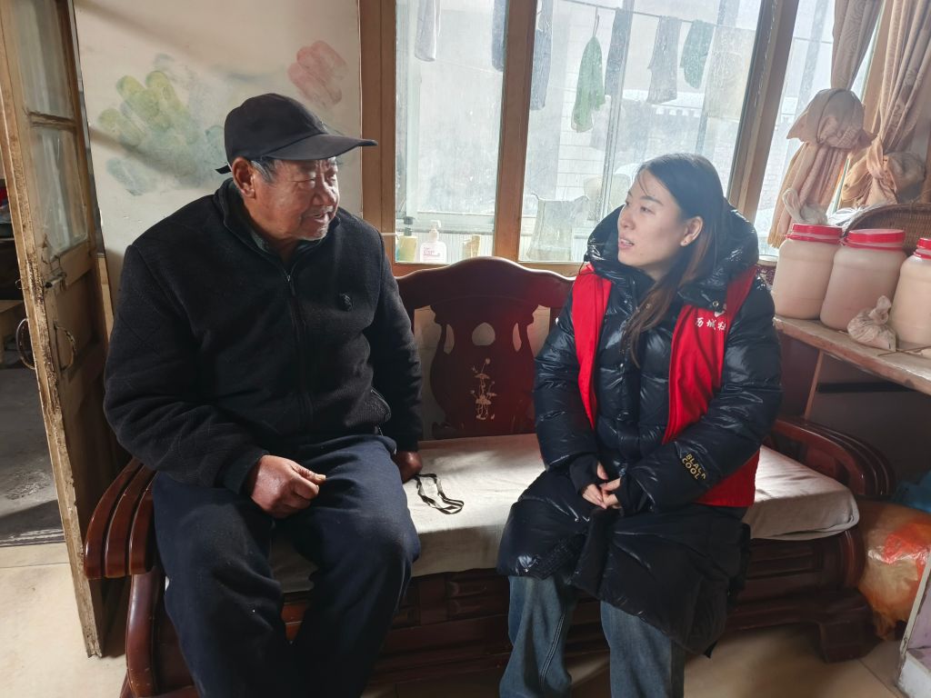 驻站社工手持铁锹、扫把,从村口主干道开始破冰除雪,重点打通卫生室、小卖部等民生通道。尤其针对行动不便家庭,社工为其清理门前斜坡积雪,确保轮椅、拐杖能安稳通行。破冰结束后,社工前往困境人群家中进行慰问,并现场检测取暖设备安全。在低保户孙大娘家中,社工发现其在室内所烧的煤炉存在一氧化碳中毒的风险,反复叮嘱孙大娘切记开窗通风,保持空气流通。"路上这么滑,你们还记挂着我们。"孙大娘握着社工的手不住地感慨。