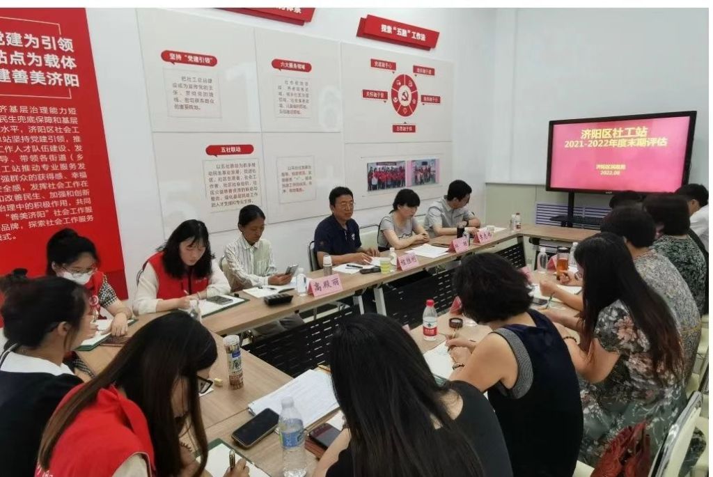 本次评估工作得到了济阳区民政局的重视和支持,区民政局副局长许春丽、慈善社工负责人张倩亲临评估现场参加评估工作,并对进一步做好社工站工作和评估工作提出了指导性的意见。快乐一家、善诺、幸福益工三家社工机构负责人,以及各社工站站长出席本次评估会议。