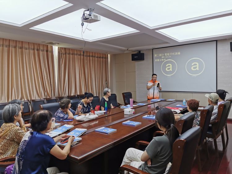 课堂上志愿者孙海航老师说到:“各位学员,我现在把操作步骤再讲一遍,请大家跟着我试一试。”很多老年人在智能手机方面是“零基础”,而且年纪大了接受能力也下降,需要更耐心地讲解。