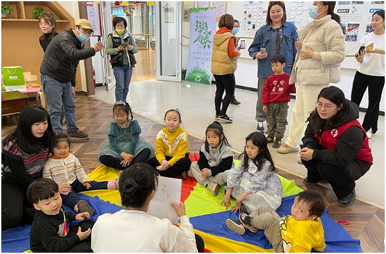 在活动中,社工向居民们讲解了亲子小组的目的——通过活动来提高亲子沟通技能,改善亲子沟通的状况。通过击鼓自我介绍,捏面人等小游戏的开展,社区的家长们带着孩子一起学习,跟着老师的口令,伴着音乐,逐渐掌握与孩子们沟通的要领,社工、志愿者、家长、儿童互相教学,其乐融融。