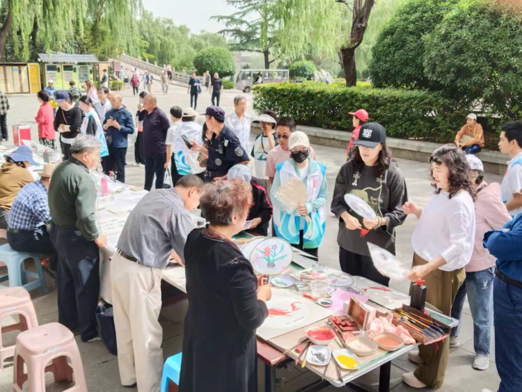 5月19日是第34个全国助残日,为了让社会各界爱心人士关注关心关爱残疾人,更好的发扬助残精神,5月11日,“‘益路同心 情暖县西'助残义集”开始啦,大明湖街道综治中心主任金勇、社会事务科负责人韩芸助力开市。社区书记郭亚楠书记带队社区工作人员扛起“卖货主播”的大旗,积极宣传着书画名家的背景、社区文创产品的创作故事、社区公益事业规划等,吸引众多游客、居民、志愿者驻足奉献爱心、购买工艺品留作纪念。