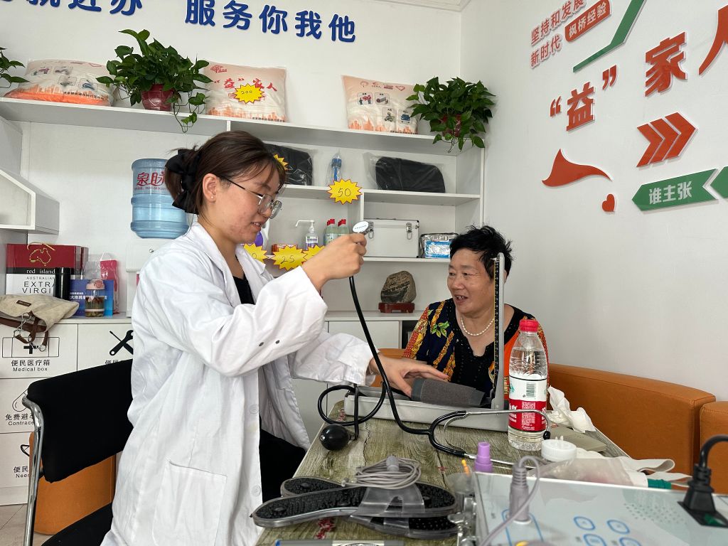 义诊现场,医护人员详细地诊断、记录患者病情,有针对性地对患者进行血压测量、液体针灸、推拿等中医治疗方法,时时细心陪护,治疗结束还耐心地讲解居民咨询的关于失眠、肩周炎、颈椎病等各种疾病的治疗问题、护理常识,生活中注意事项,如何调整饮食等。大家聚在一起有说有笑,通过互相分享预防疾病小知识、提出改善诉求,倾听医生的建议。让前来就诊的居民在温馨愉悦的氛围中,病痛得以治疗和缓解。