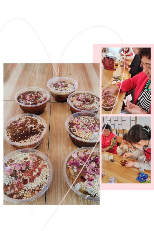 半个小时冰粉就凝固好了。在社工的指导帮助下,组员将椰果、葡萄干、山楂碎等小料按照个人口味依次加入凝固好的冰粉中,一碗碗五颜六色的冰粉制作成功了。组员享受到了自己制作的美食,一个个都吃得津津有味。整个活动过程其乐融融,洋溢的甜蜜的味道。