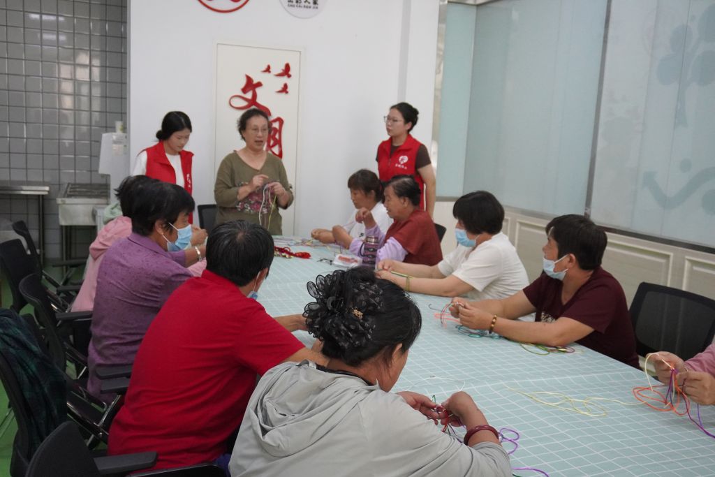 “中国结”是中国传统文化的一个重要元素,寓意团圆、平安、吉祥,不仅造型优美,色彩多样,而且蕴藏深刻的爱国寓意。为进一步传承艺术经典,丰富居民的业余文化生活,学习更多非遗技艺,9月13日,郭店街道社工站联合虞景社区开展“巧手中国结 幸福永相连”手工编织活动。