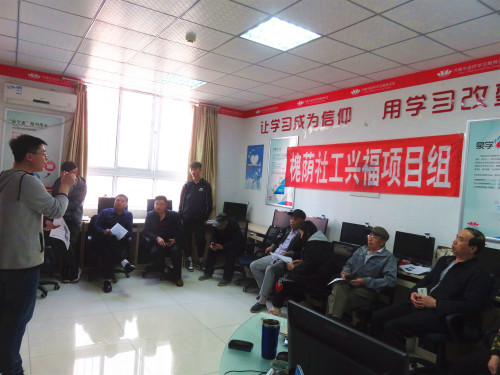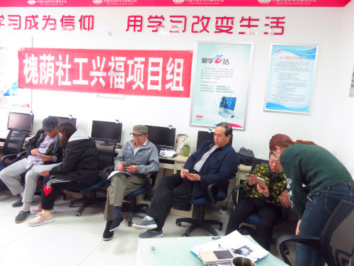 近年来随着智能手机的快速发展,使得QQ、微信、微博等社交软件越来越便捷,为满足社区回迁失地老人的需求,3月20日下午,山泉驻槐荫社工兴福项目组在综合文化站二楼开展以“微信的使用”为主题的手机学习小组活动,8名小组成员准时参加。