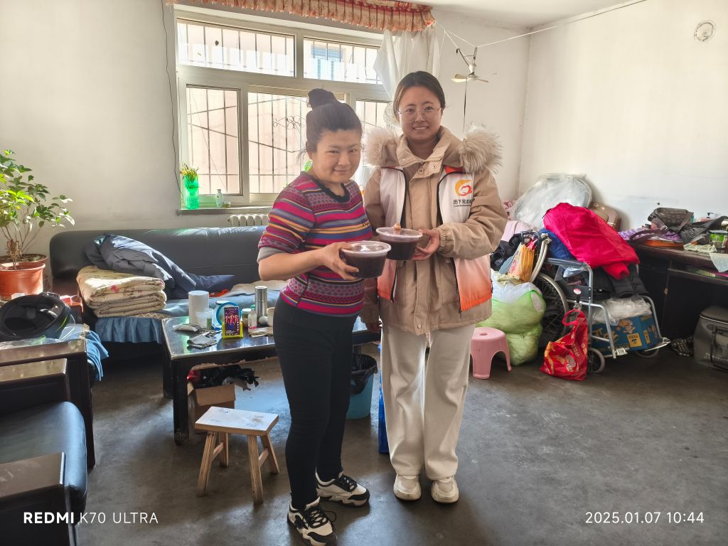 为落实社会救助、弘扬中华民族传统文化,进一步了解辖区内低保、残疾人的基本状况和服务需求,2025年1月7日,姚家街道社工站链接山东右典健康产业有限公司,协同友谊苑社区组织开展了“浓情腊八,温暖送到家”腊八节入户探访活动。