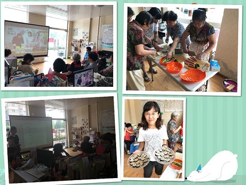 红烧茄子是一道历史久远的特色传统佳肴,此菜鲜香适口,外酥里嫩,味美多汁。茄子含有丰富维生素E,有防止出血和抗衰老功能,常吃茄子,可使血液中胆固醇水平不致增高,对延缓人体衰老具有积极作用。项目社工带领大家通过视频学习了红烧茄子的制作过程,并请组员王阿姨、张阿姨分享了自己制作茄子的经验。随后,社工拿出寿司的制作材料,邀请了张阿姨和杨阿姨带领大家学习并制作寿司,竹帘上放紫菜、平铺米饭、放上黄瓜、火腿等……不一会儿,一盘盘精美的寿司就做成了。组员们品尝着寿司的同时,还表示回家也要尝试着做做,等孙子孙女来家时,好给孩子们露一手。