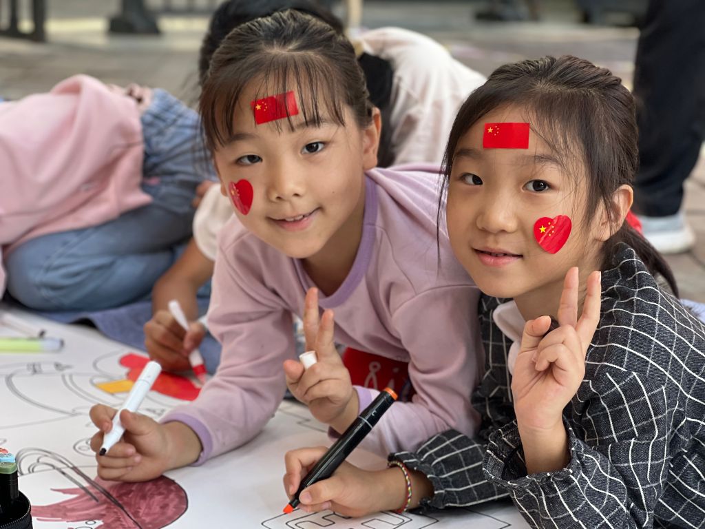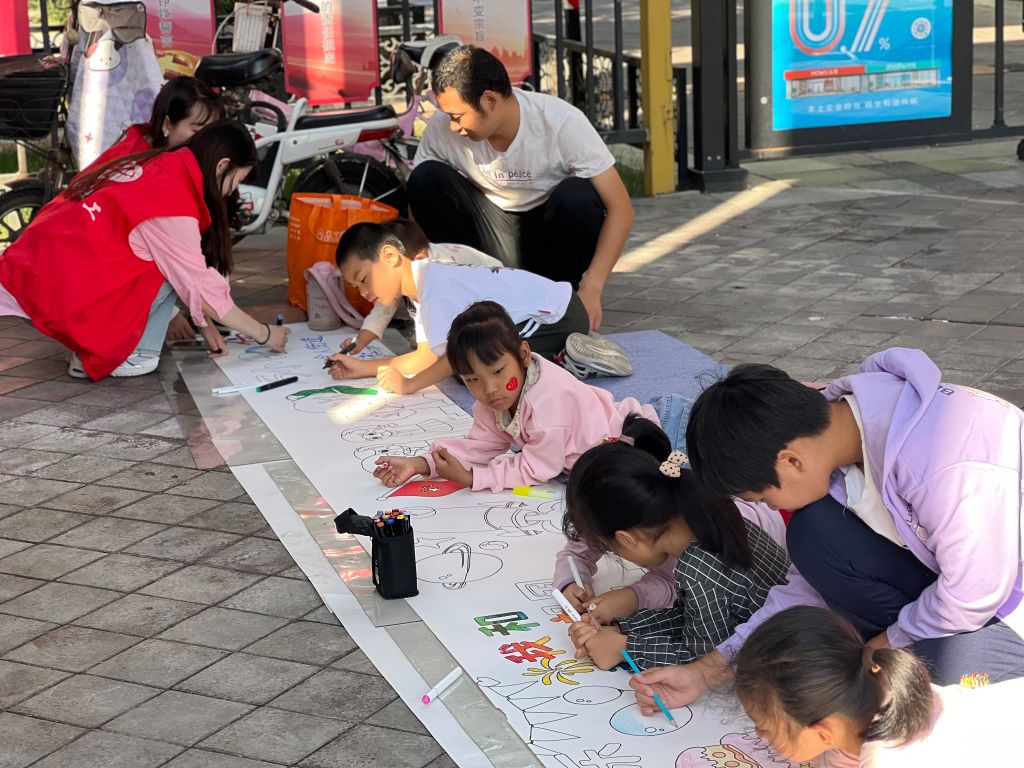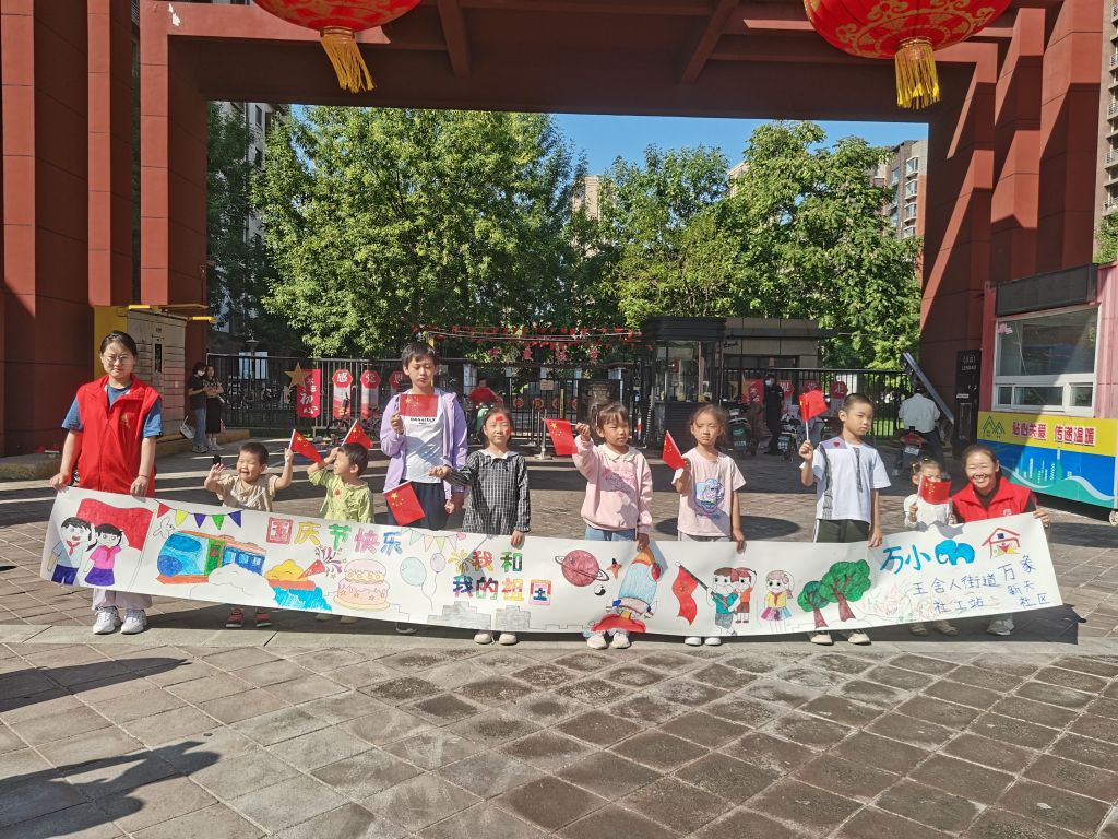 9月28日,王舍人街道社工站联合儿童友好社区万象新天社区,特别为社区内的孩子们举办了一场“童心迎国庆 共绘庆祖国”儿童友好长卷共绘活动。孩子们用五彩斑斓的画笔,在画纸上尽情挥洒创意,描绘出他们心中的祖国形象,展现了孩子们对祖国的热爱与向往。