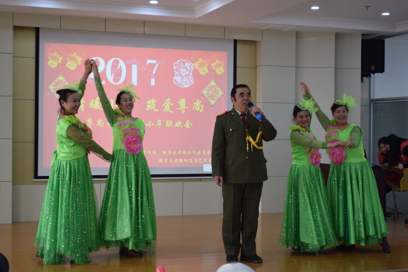 此次活动以娱乐表演、包水饺为主线。在“老槐树”志愿团军鼓队的恢弘气势中,项目组社工和工作人员在阅览室、娱乐室、老年大学等功能室带领老人开展“魔术气球”、“打麻将”“下象棋”等活动。随后,由“老槐树”志愿团队在五楼多功能厅进行了文娱表演,歌唱、舞蹈、山东快板、京剧等丰富多彩的节目表演活跃了现场气氛,更有表演者和老人温馨互动,把活动推向了高潮。最后,福利中心组织老人及员工进行了包水饺活动,适逢两位老人家属来院探望,便邀请家属参与其中,大家其乐融融,欢声笑语充满了整个餐厅,津津有味吃着齐心协力包出来的水饺,让大家在欢乐的同时,也充满了成就感。
