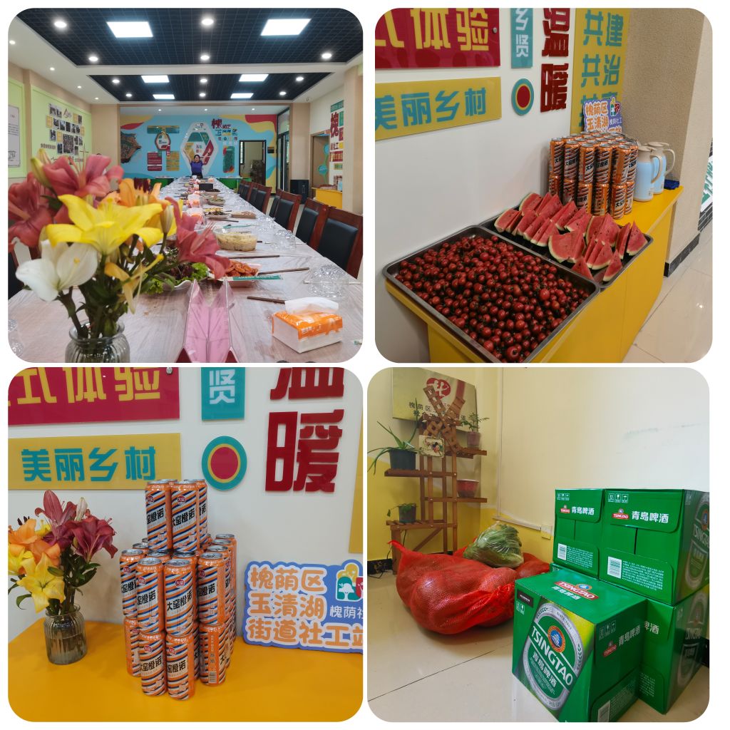 以多元的主体,共同彰显“五社”力量的发挥。本次活动得到了玉清湖街道办事处与新庞村的大力支持,为促进活动的顺利开展,社工链接了乡村企业健之峰集团,为本次活动赞助了一些菜品和物资,链接社会组织孚霖如康家园,为活动提供了手工粽子与炖鸡腿,同时,社工链接新盘村“艾上餐厅”,为活动提供了餐具等活动物资。通过本次邻里家宴活动,进一步促进村委与辖区企业之间的合作交流,助推社工站联动各方资源,关心乡村发展,共同参与乡村治理。
