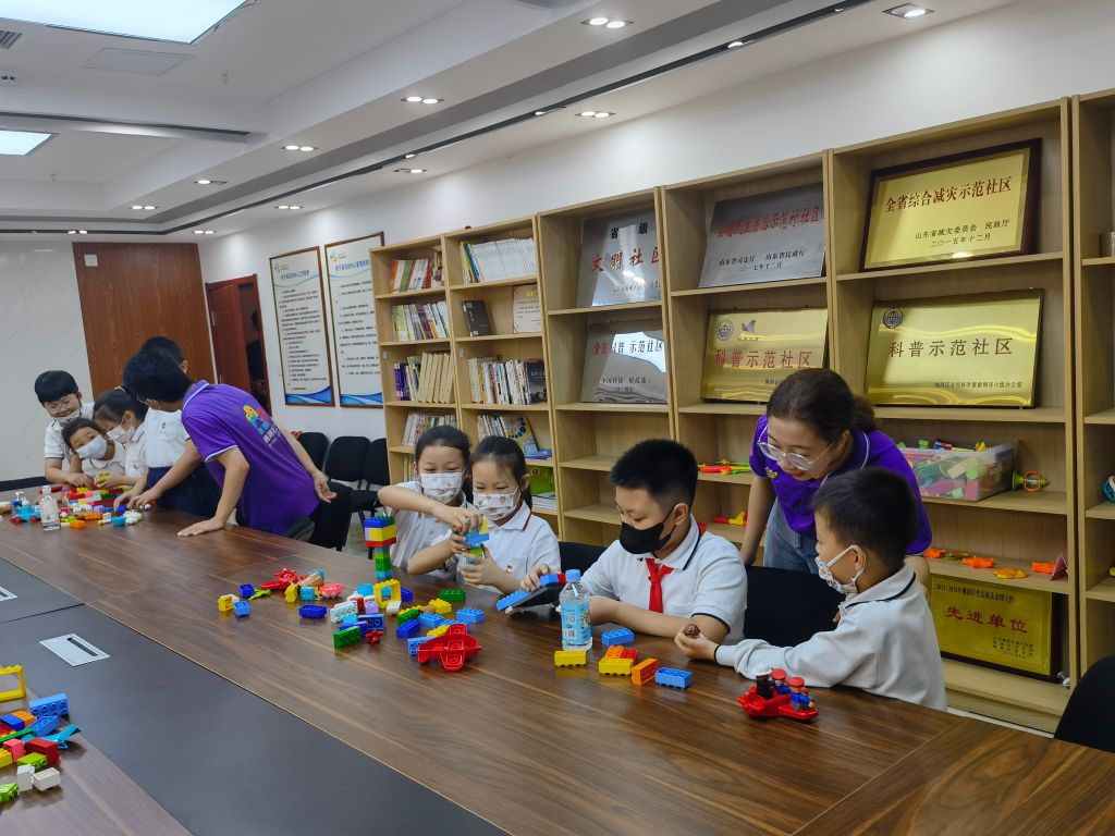 乐高搭建结束后,社工带领同学们及其家长们共同参观了科普室,学习了地质构造、星球运动等天文知识,也了解夏令营暑假实践活动的环境。同学们学习热情高涨,兴趣浓厚,在开营活动中也得到了一定的提升。
